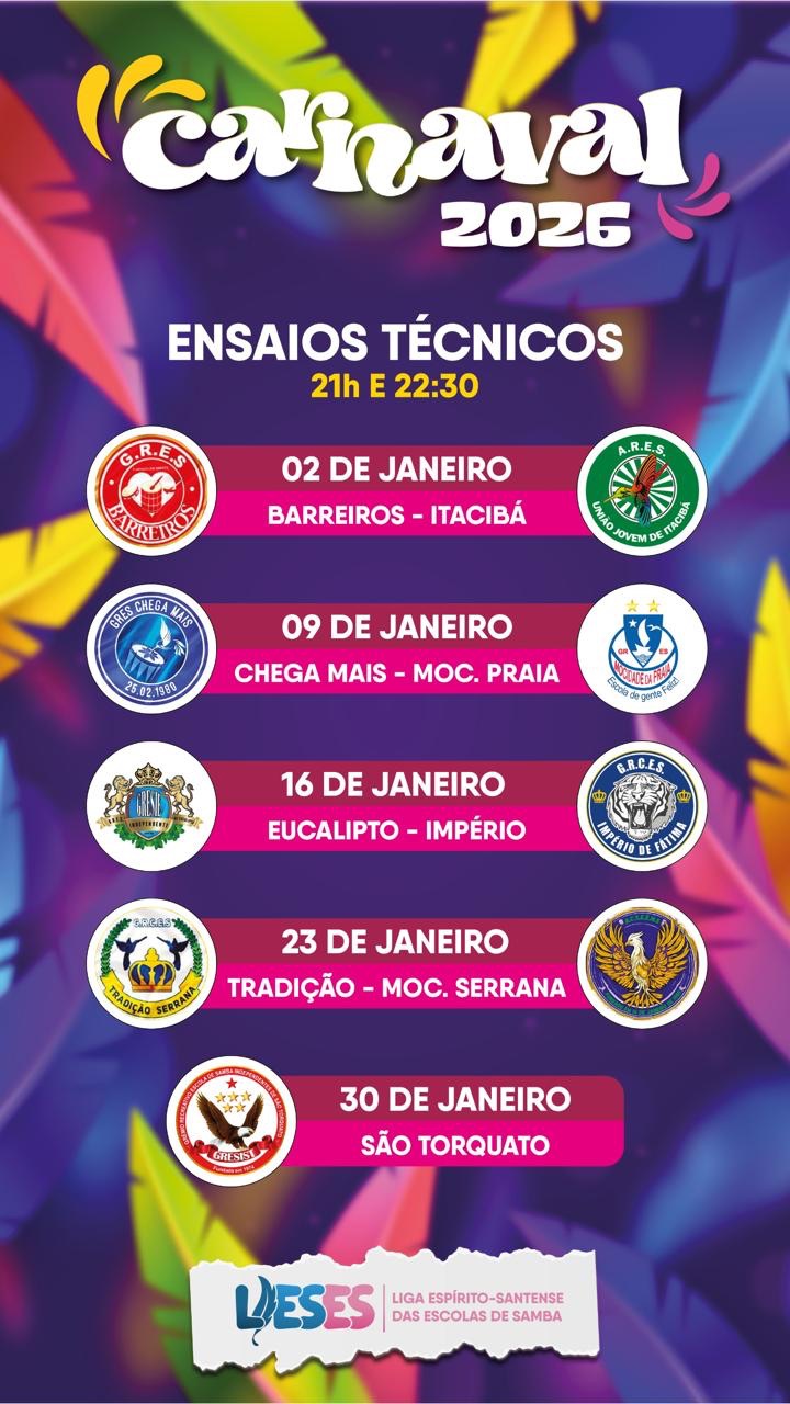 Com isso, o calendário do samba em Vitória também ganha nova estrutura: o Grupo Especial, organizado pela LIESGE, continuará abrindo o Carnaval Nacional na semana anterior, enquanto a Série Ouro encerra a programação carnavalesca da capital na semana oficial da festa.