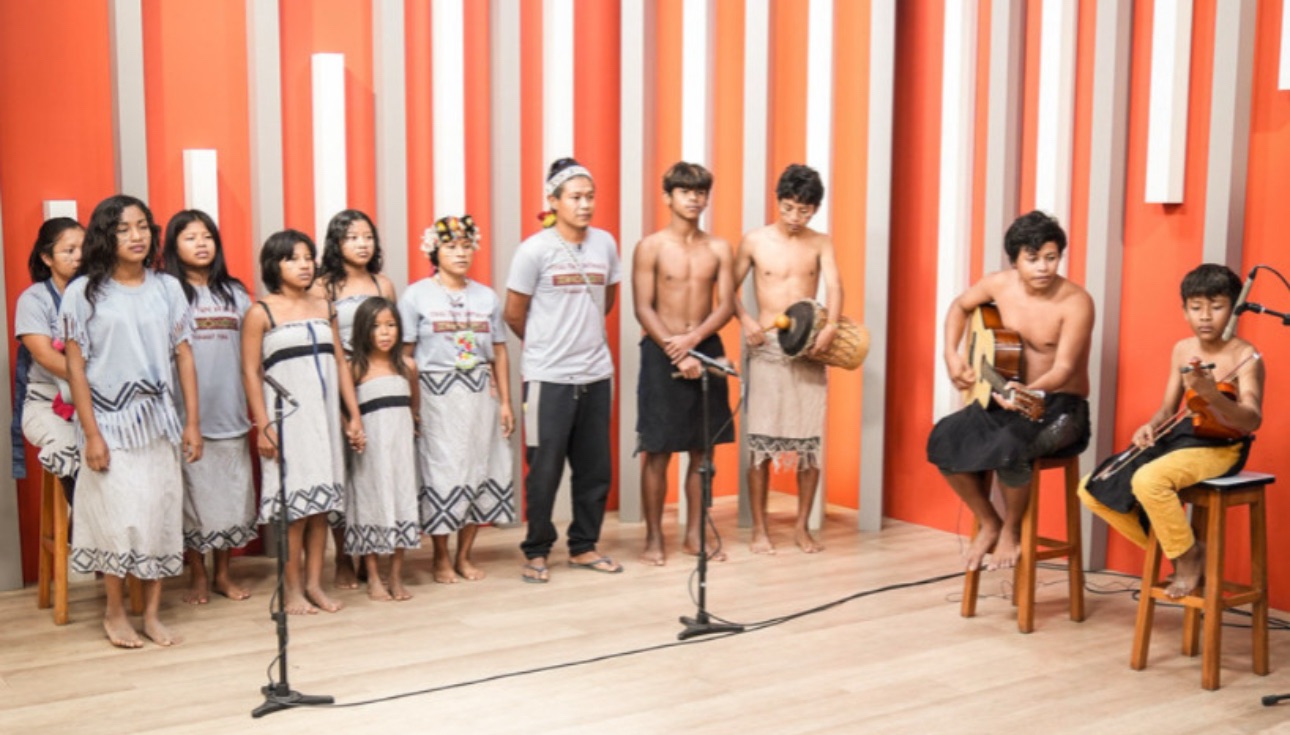 Segundo ele, o grupo também se apresenta em escolas, universidades e espaços culturais, levando a música, a língua e o nome da aldeia para outros territórios.