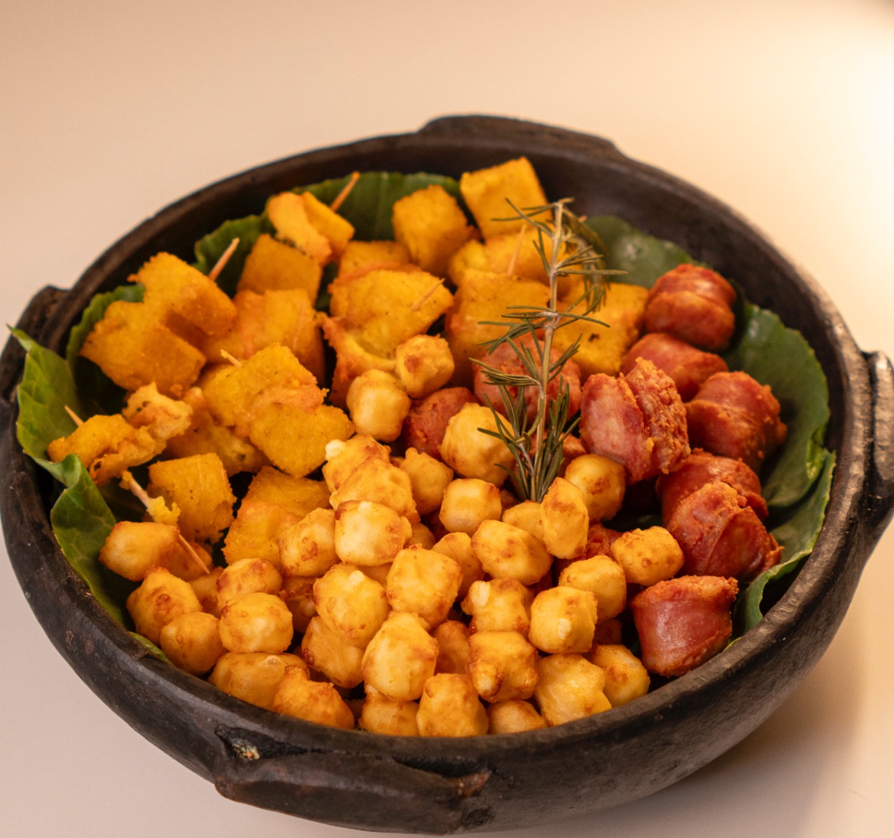 Prato – Trio Italiano – Queijo, Polenta e Linguiça. Valor: R$ 85, serve três pessoas
